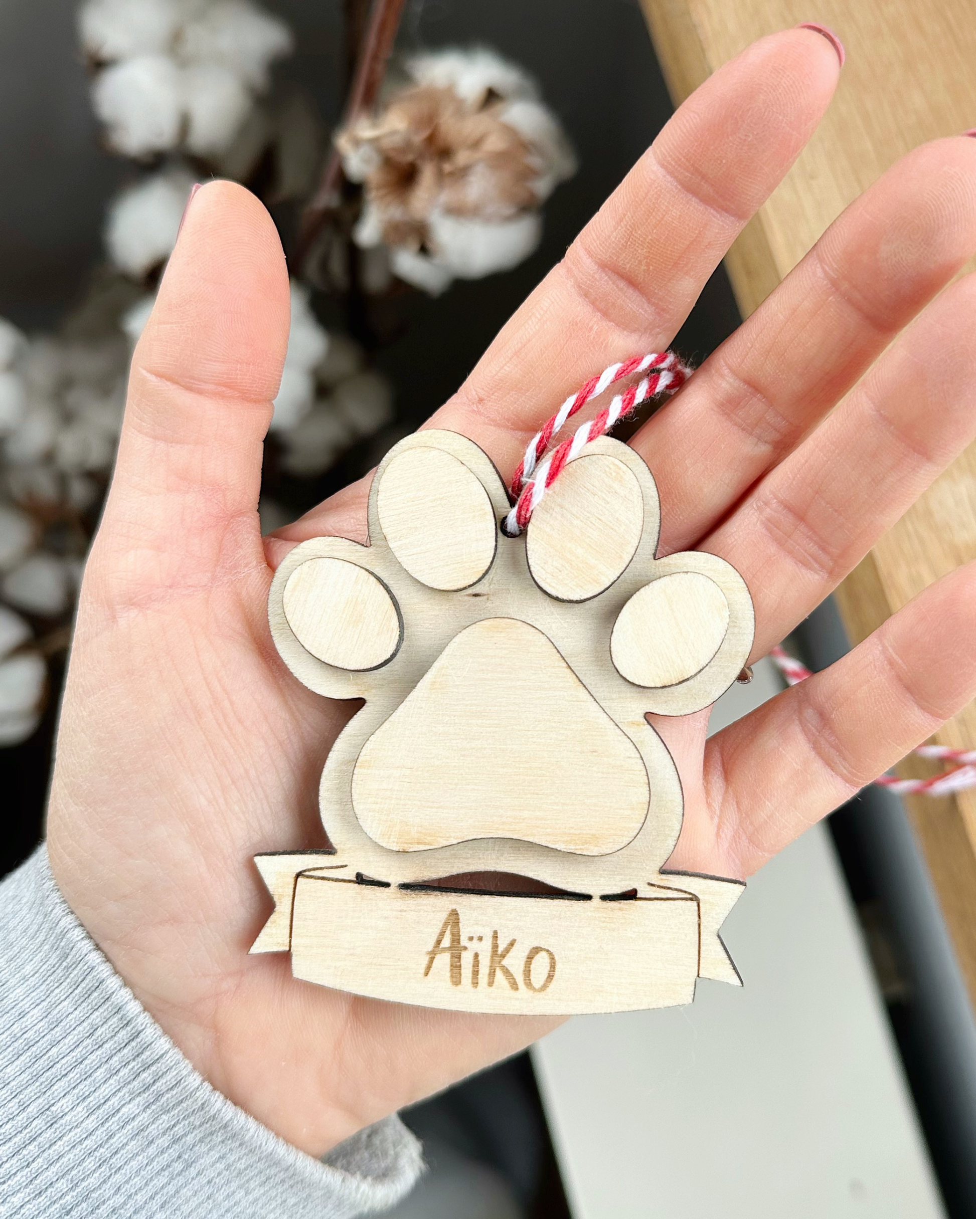 Personnalisez votre sapin avec cette adorable patte en bois gravée au prénom de votre toutou. Naturelle, minimaliste et pleine de charme, elle célèbre votre compagnon comme un membre de la famille🎄